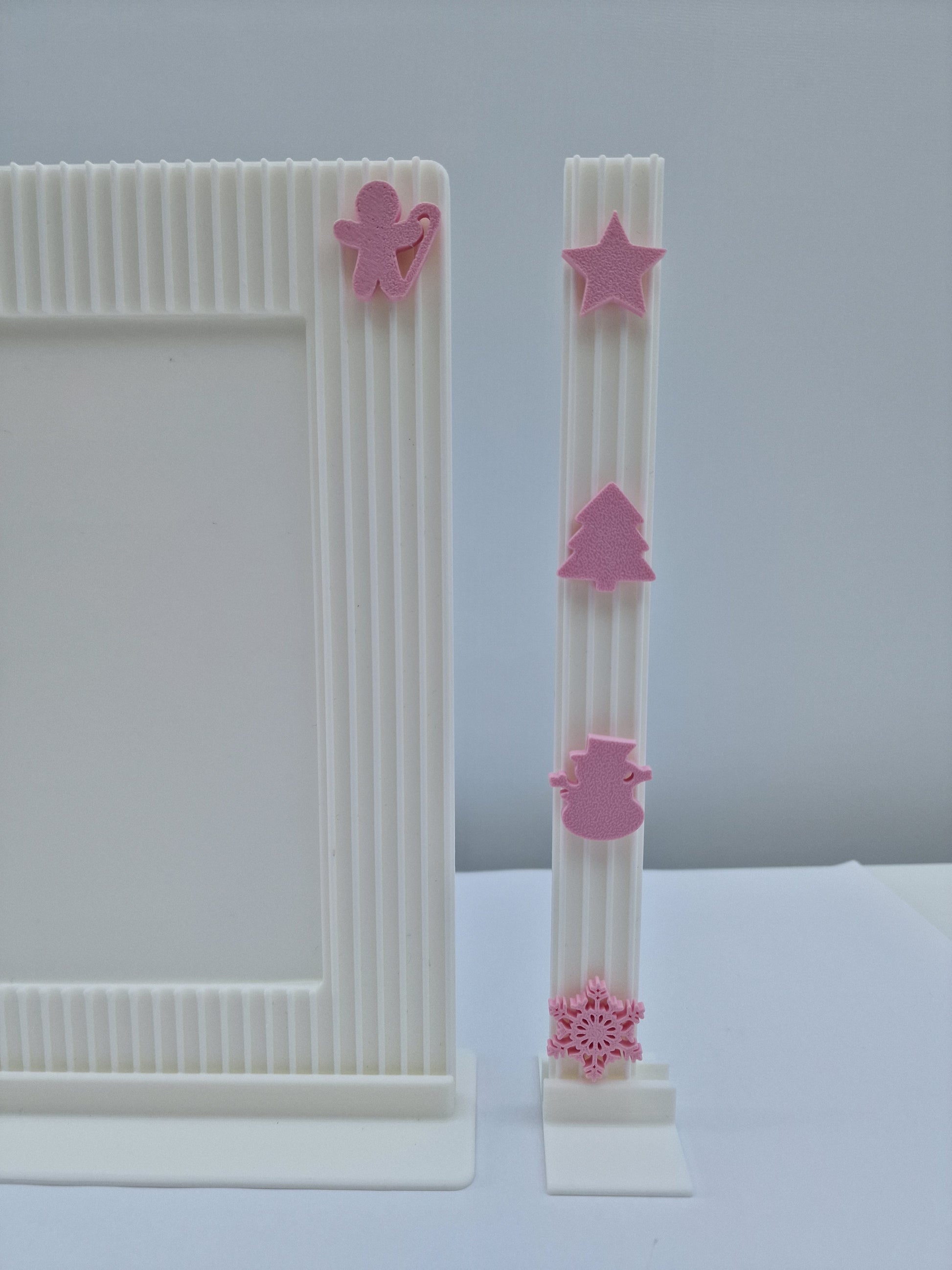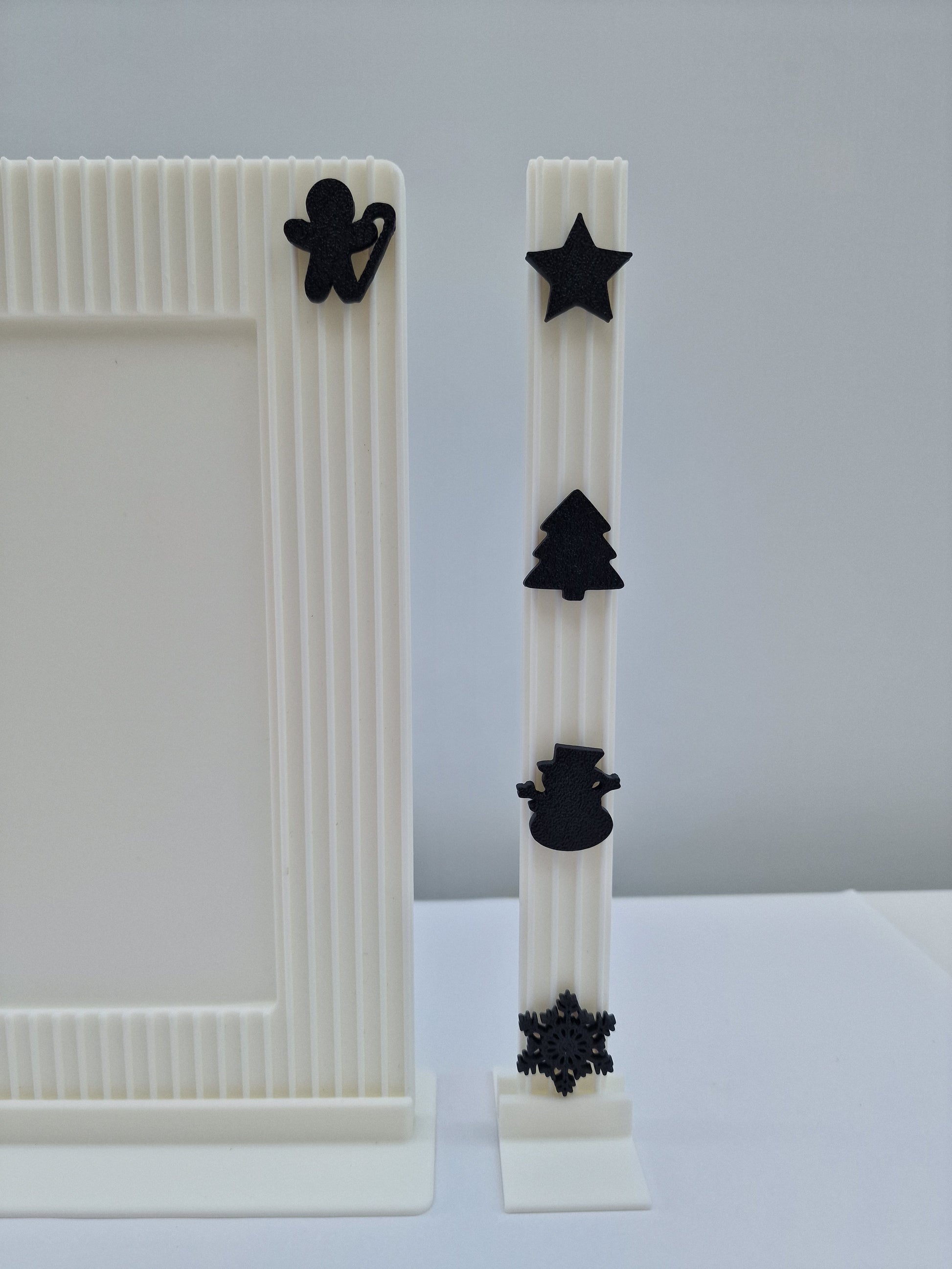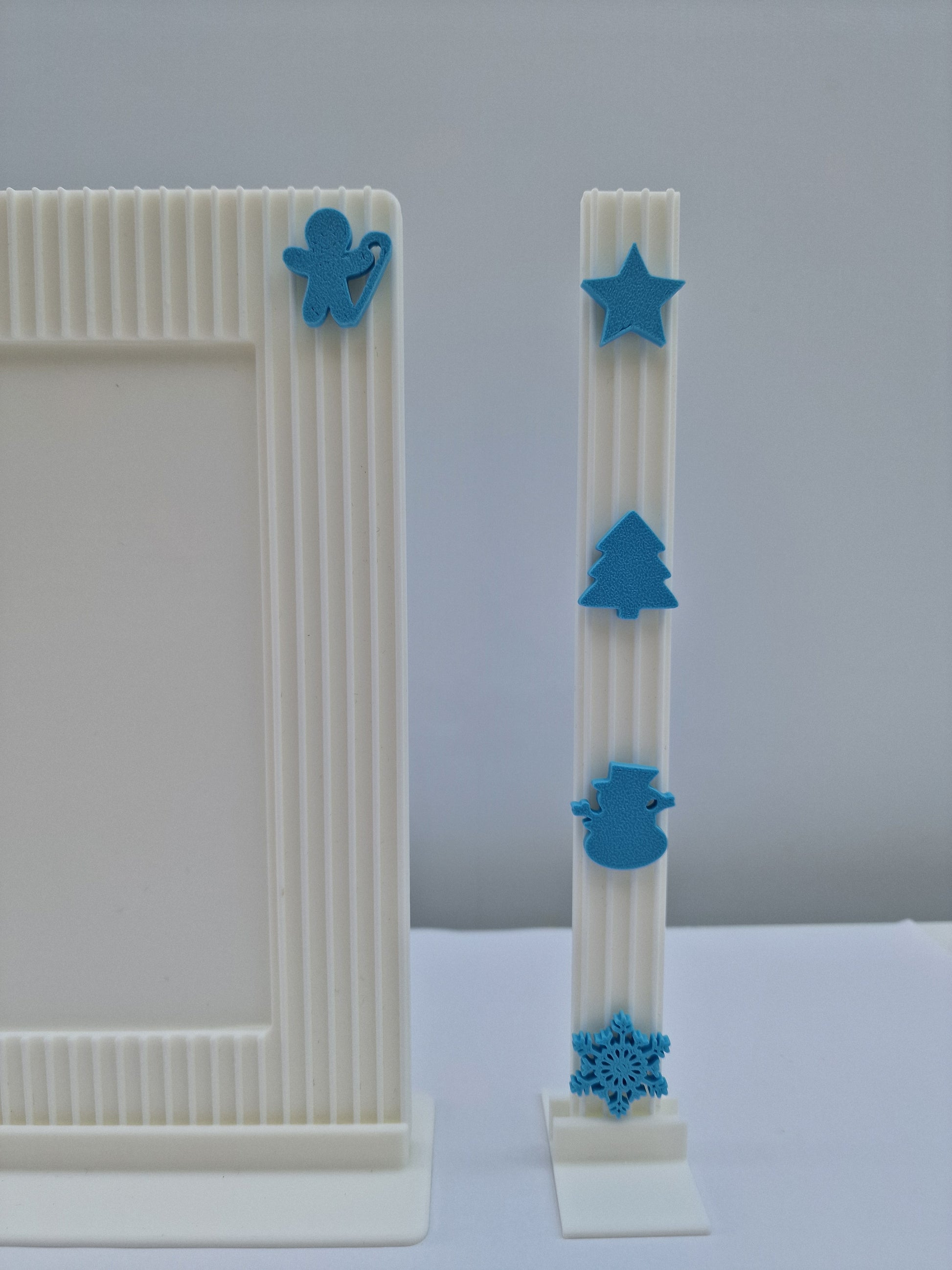 Enthalten sind Lebkuchenmann 🍪, Stern ⭐, Tannenbaum 🌲, Schneemann ☃️ und Schneeflocke ❄️ – alle 3D-gedruckt aus hochwertigem PLA und perfekt auf das 167-Stecksystem abgestimmt.